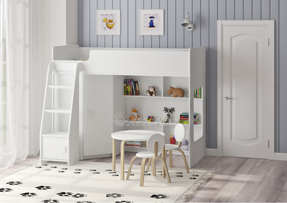 Высота чердака всего 1405мм, что легко позволит взрослым наблюдать за ребенком на кровати или достать что-то с верхнего яруса.